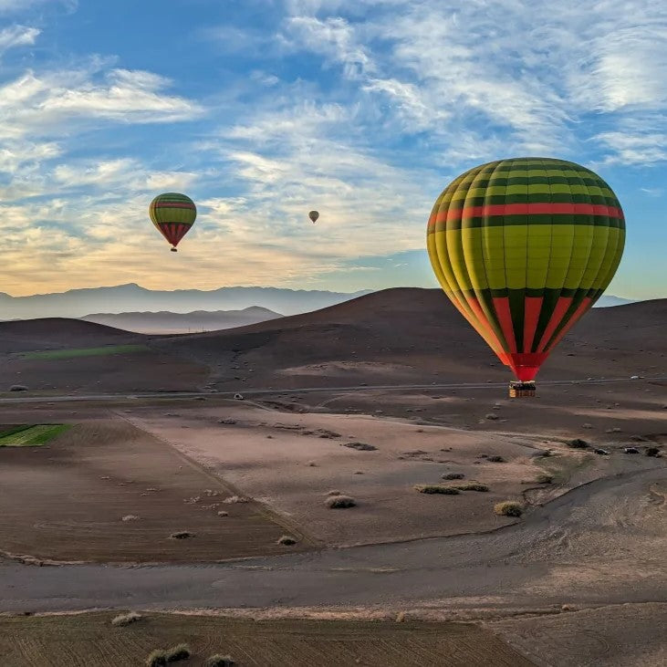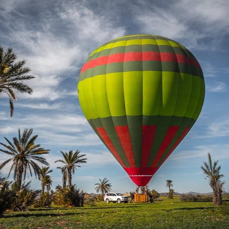 Vivez une expérience unique en prenant de l’altitude au-dessus de Marrakech. Dès le décollage, vous survolerez la palmeraie luxuriante, les villages traditionnels et les paysages contrastés entre désert et oasis.