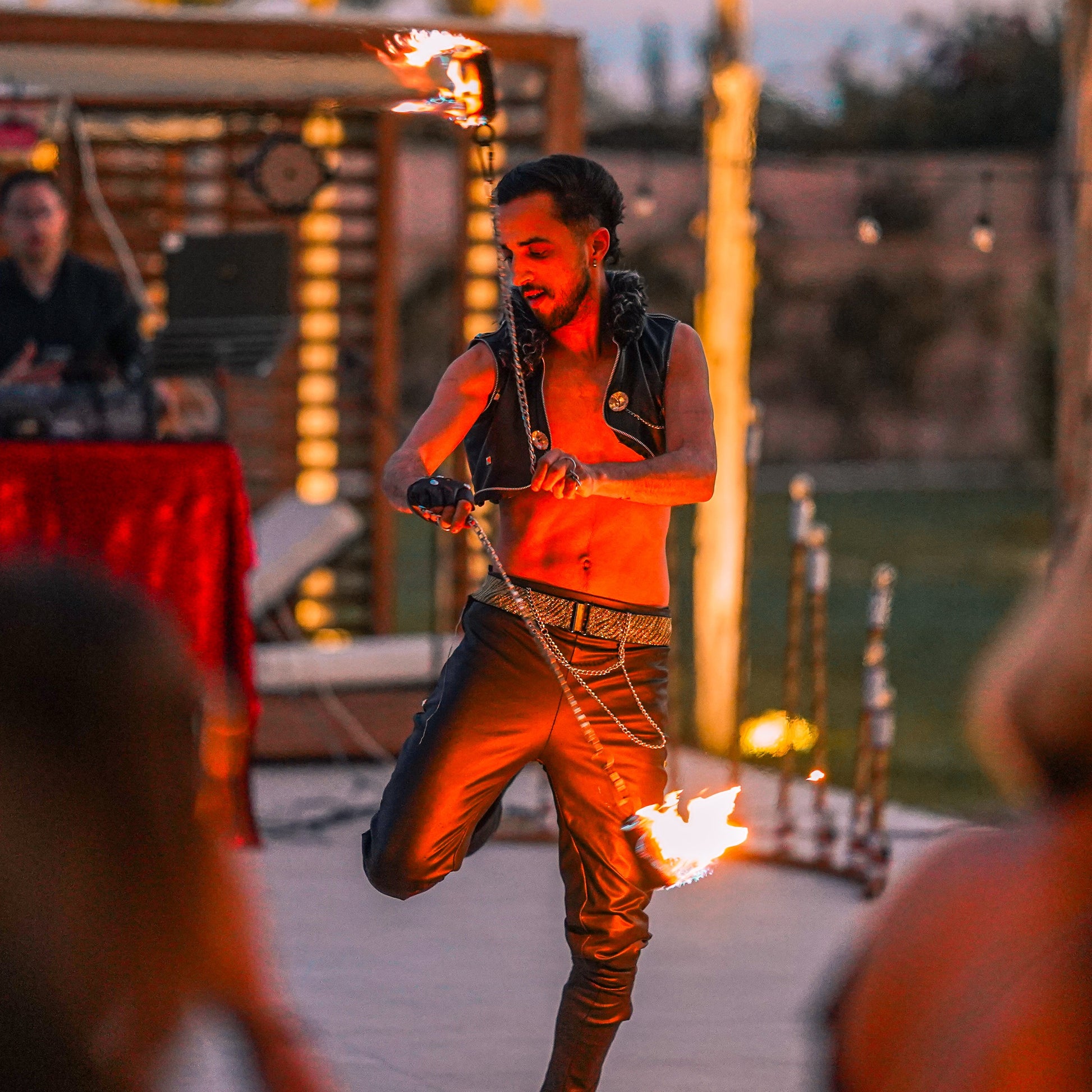 Plongez vos invités dans un spectacle hypnotique où le feu devient un art. Au cœur du Palais Freedom, le cracheur de feu captive les regards et crée une atmosphère à couper le souffle.