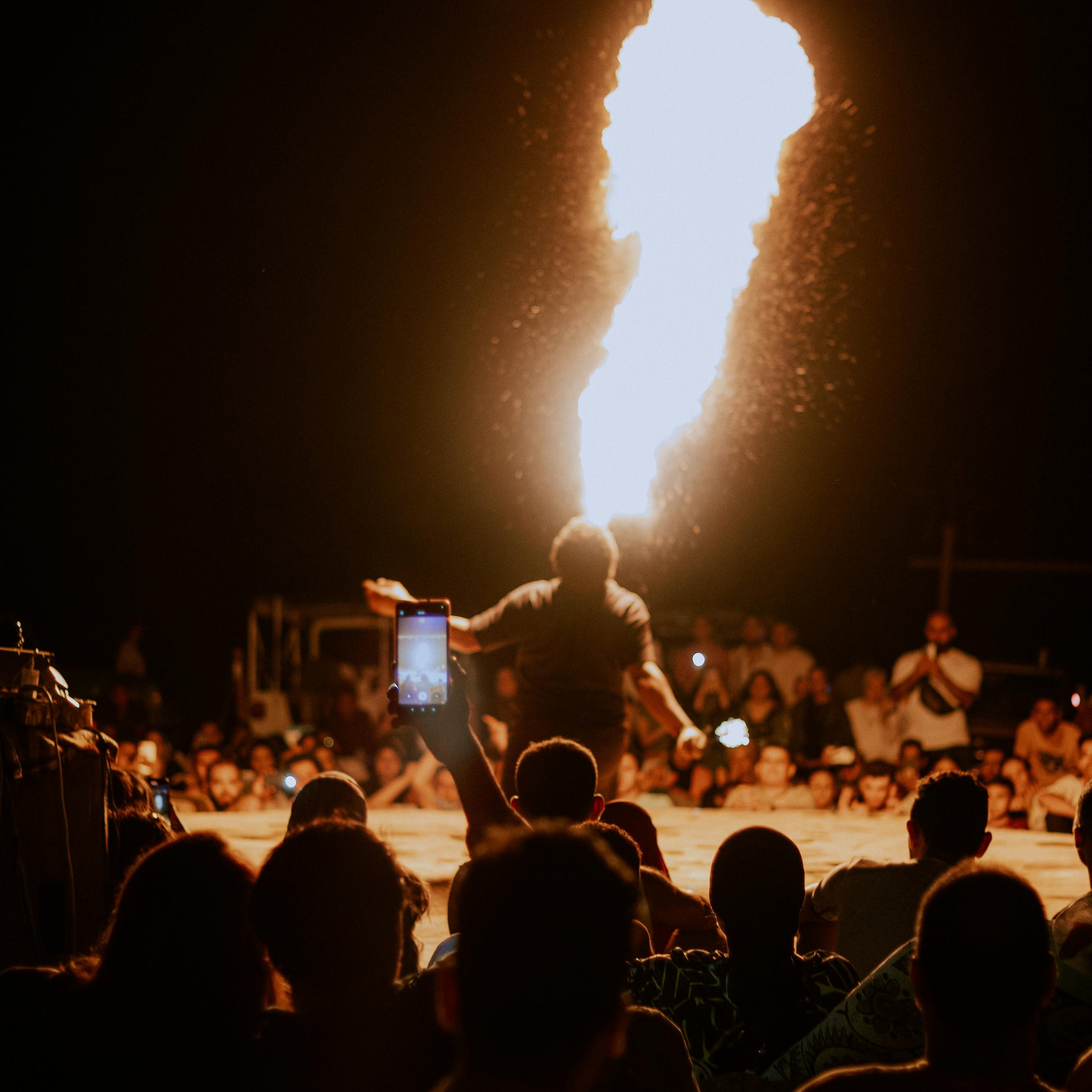 Les flammes s’élèvent dans la nuit, dessinant des figures majestueuses sous les yeux émerveillés de vos convives. Ce show immersif crée une véritable montée d’adrénaline tout en restant parfaitement sécurisé.