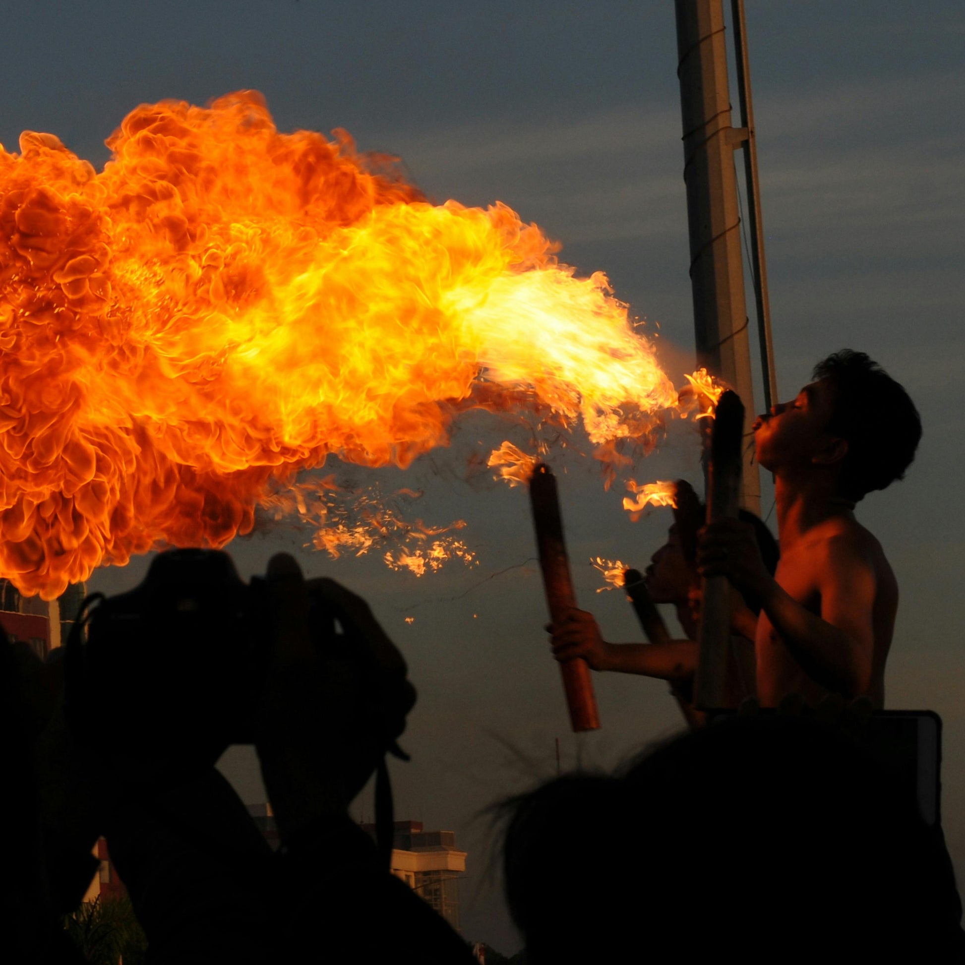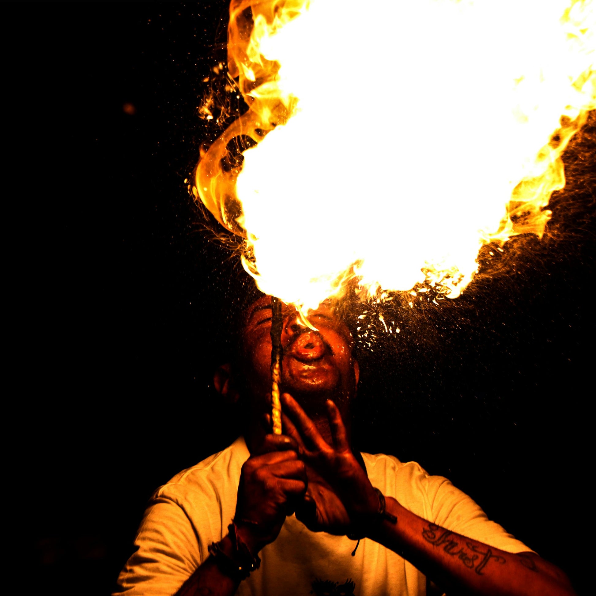 Notre cracheur de feu est un artiste professionnel formé aux normes de sécurité les plus strictes, utilisant des équipements et des techniques sécurisées pour garantir le confort de tous.